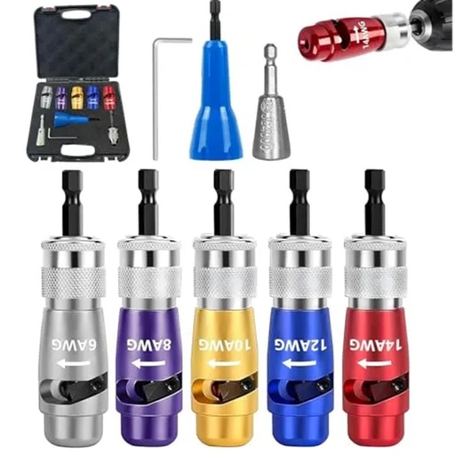 [STC-KIT01-STRIPPERS] STC - Kit Herramienta de Puntas Pelacables para Taladro Electrico 5 Piezas (6AWG/8AWG/10AWG/12AWG/14AWG)